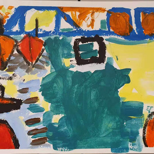 4. How the magic number 3 appeared again, how he made the centre 3 boats all different -size, direction, shape.