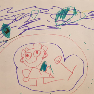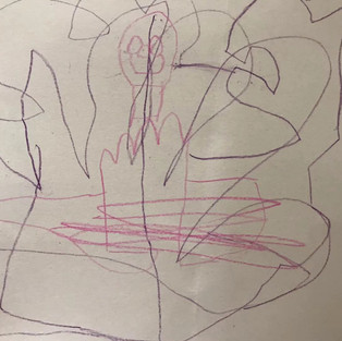 Age 3, her favourite scene from the story, the prince hide his arms behind and come for the princess, they are very happy inside double bubble. Outside the bubble its rainy with thunderstorms, the green evil fairy on the left was angry but she cannot get inside the safe bubble!