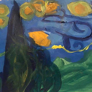 2. Mix thick paint, then scrape with fork to make marks, keep them marks curly! Work quickly before paint drys